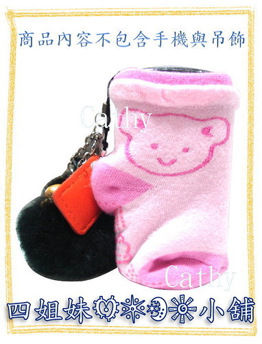 粉紅色兒童防滑襪手機袋