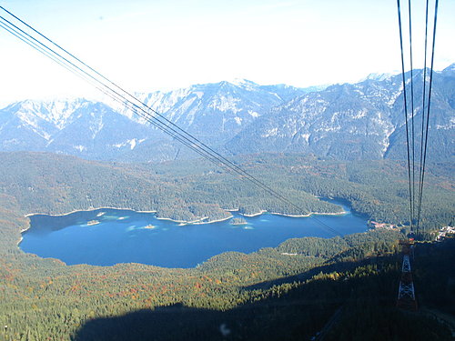 從Garmisch-Partenkirchen(GP) 搭火車 到海拔1000m的艾柏湖 Eibsee 轉搭纜車上山