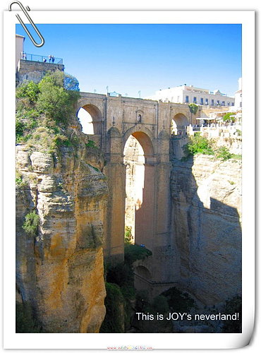 Rio Guadalevin峽谷兩邊的小鎮風情,懸崖峭壁危險又美麗的風光,從橋上俯瞰橋下的萬丈深淵,豐富的歷史與獨特的地形,還有讓人難以忘記的小鎮居民臉上的溫暖微笑,在在讓我感受到隆達小鎮的可愛與樸實。