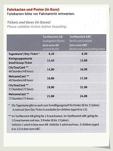 重點是價格喔!!!!同樣是Berlin AB zone的一日票價格只要6.1歐元,所以買柏林卡的我是"潘仔"。