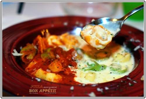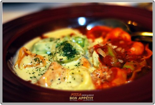 蕃茄佐義大利Gorgonzala乾酪醬餃子