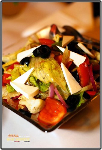 新鮮蔬菜簡單的以橄欖油醬汁調味 飛達起司質地柔軟不膩 加了黑橄欖就是很大人口味的沙拉