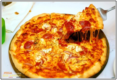 起司拉超長的披薩 老闆用料實在不手軟 口味適合大小朋友