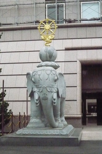 我個人最欣賞覺得絕妙之處則不在大雄寶殿內,而是在後面的花園裡,竟然出現多啦A夢、猛瑪象以及哈利的嘿美雕像。