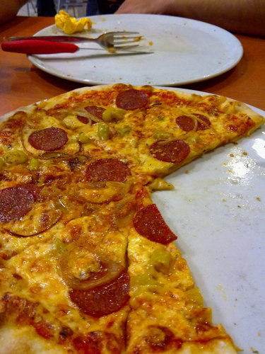 直徑30公分的大Pizza,是一人分。 我沒說謊,Dennis已經吃完了,但是我已經飽了。