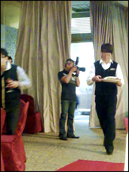 一進去最吸引我注意的不是新人婚紗,而是這位白髮蒼蒼的攝影大哥。