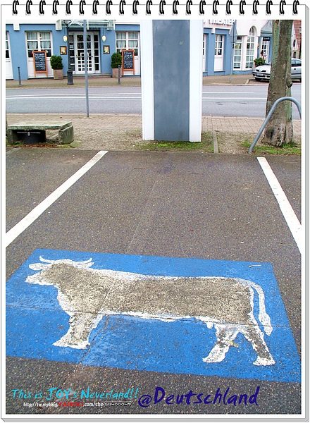 這小鎮中心的停車場,竟然畫有牛停車格。