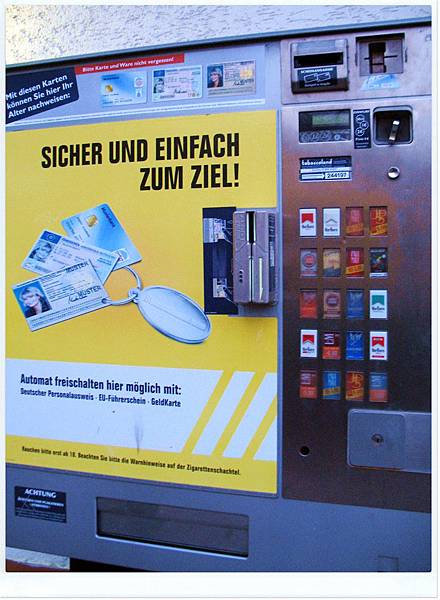 直到Jackie一語驚醒了我,才發現聰明的德國人,為了確保不讓未成年的人買菸,特別設計了要刷證件的販賣機!