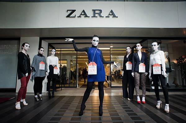 ZARA身為快速時尚領頭品牌卻不負起企業責任,連替ZARA展示服裝的櫥窗人型模特兒都感到憤憤不平,從櫥窗走上街頭表達想要穿無毒製造的服裝的意願!